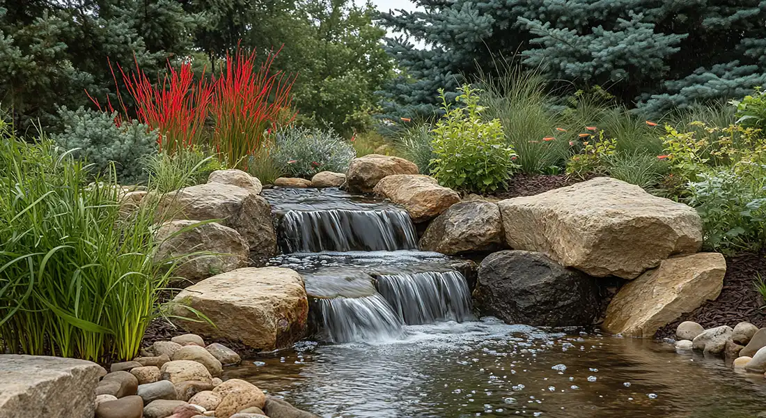 Custom fountains, water features, and statement plantings that anchor courtyards, entries, and gathering spaces.